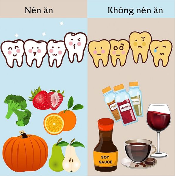 Bao gồm những thực phẩm có màu, độ bám lâu, khiến răng dễ nhiễm màu: